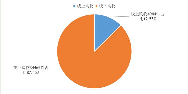 (四)线上线下消费分类。39409件投诉举报中,通过线下消费投诉举报34465件,占比87.45%;线上消费投诉举报4944件,占比12.55%。主要反映问题有以下4个方面内容:一是购买的餐饮食品、预包装食品含异物、过期、变质、宣传与实物不符、短斤少两、实物与下单产品不符等,二是购买的药品、服饰及家居用品产品存在质量问题、价格过高、要求退换货遭拒绝等;三是提供的酒店、宾馆、美容美发等服务与宣传不符,四是反映平台赠送的优惠券无法正常使用,涉嫌虚假宣传等。